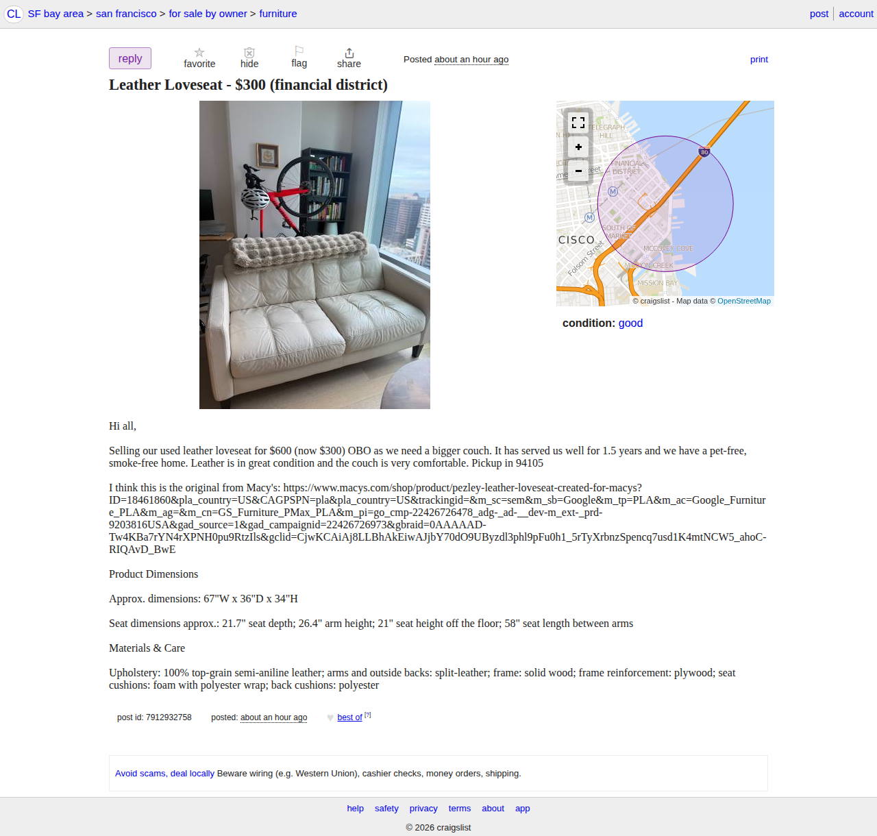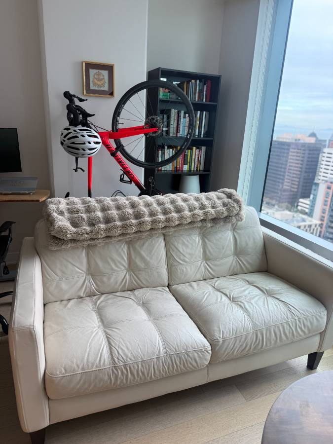 Contemporary Biscuit-Tufted White Leather Loveseat