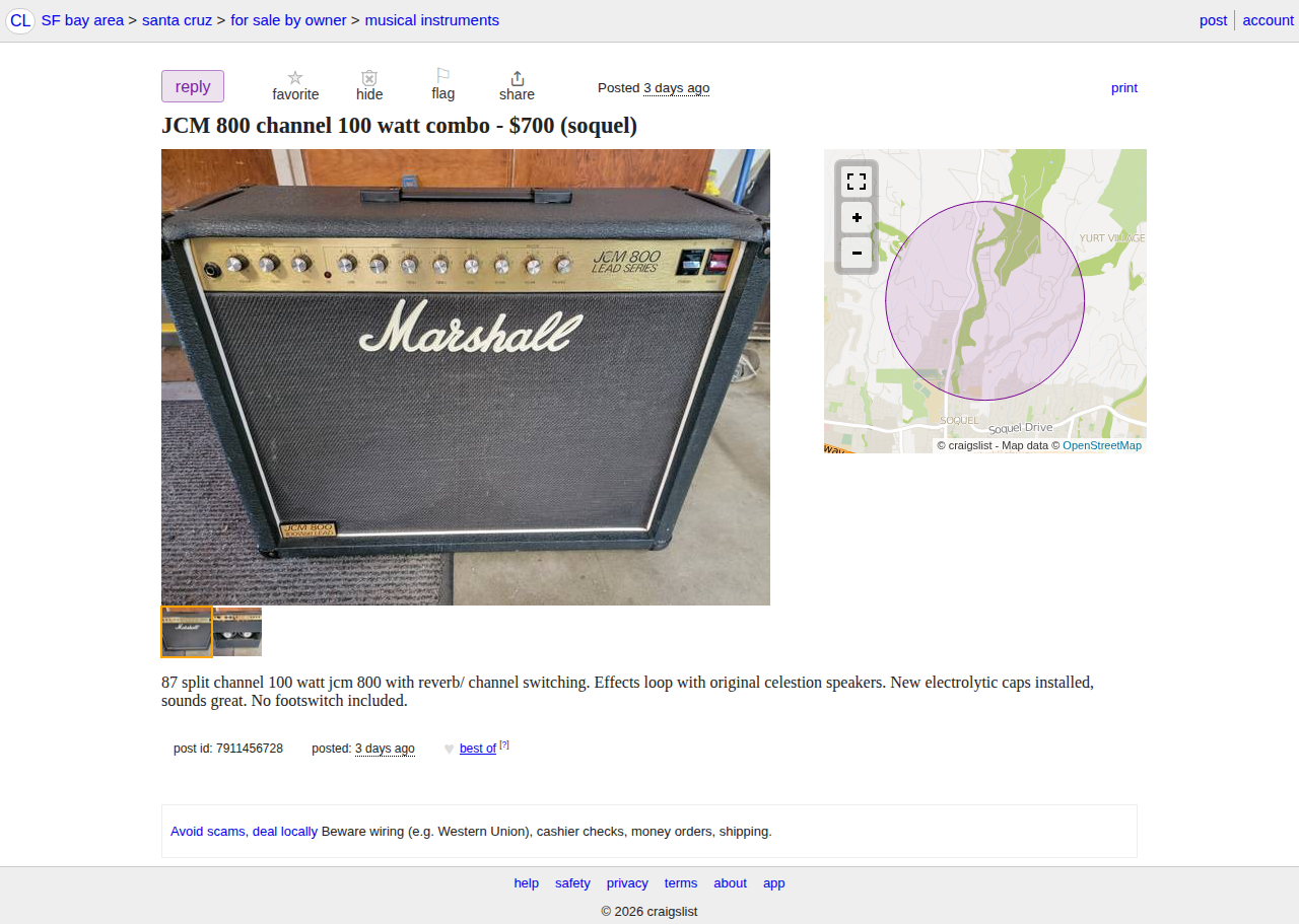 1987 Marshall JCM 800 Lead Series 100 Watt Combo (likely Model 4211 or 4212)