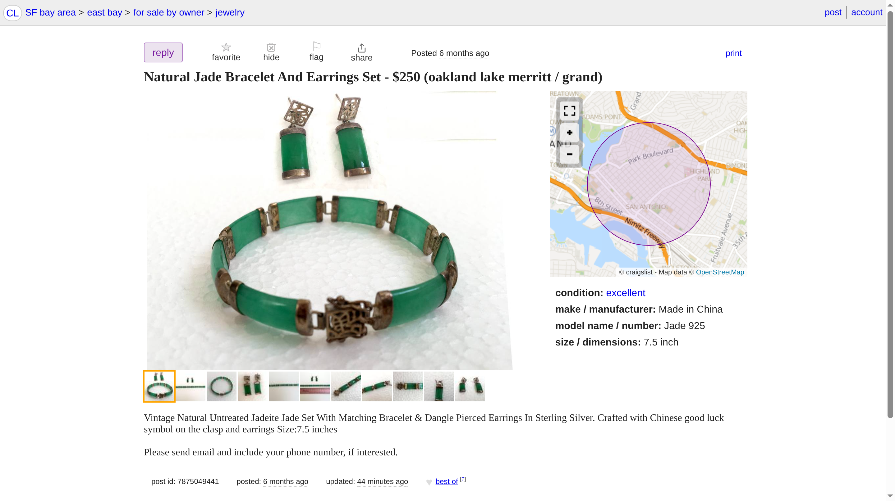 Vintage Natural Jade Bracelet & Earrings Set (Sterling Silver)